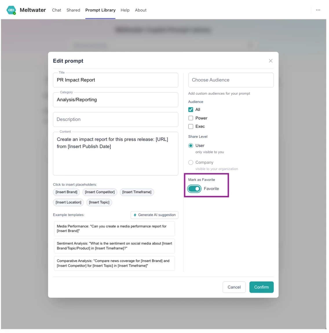 - Or, when creating a custom prompt, toggle on Mark as Favorite