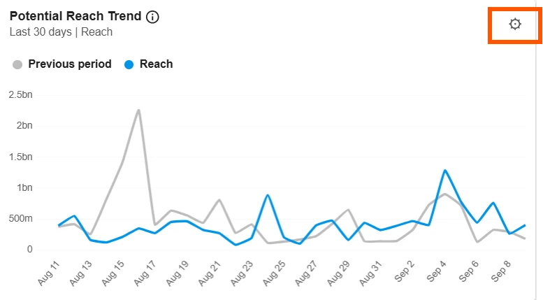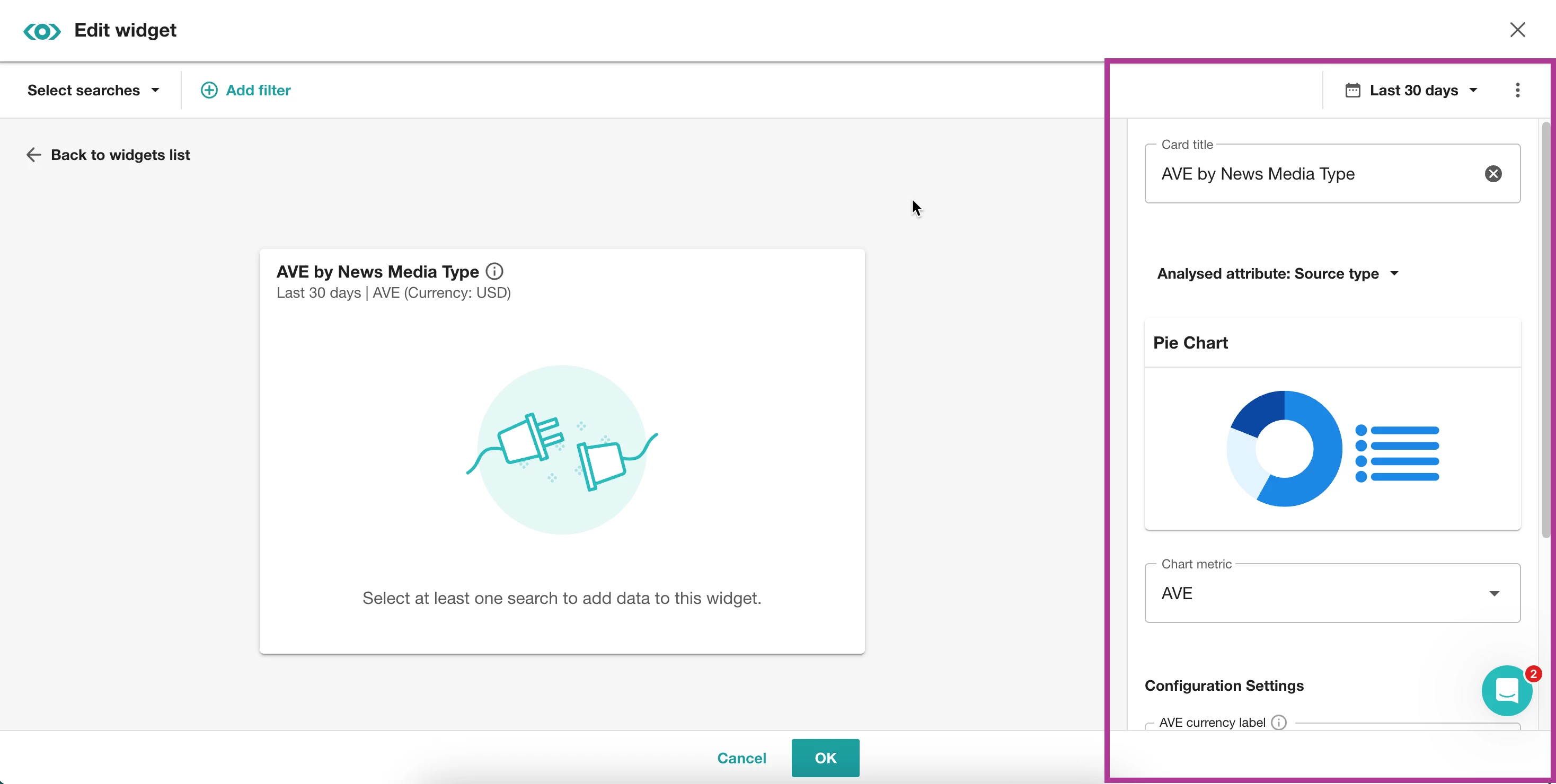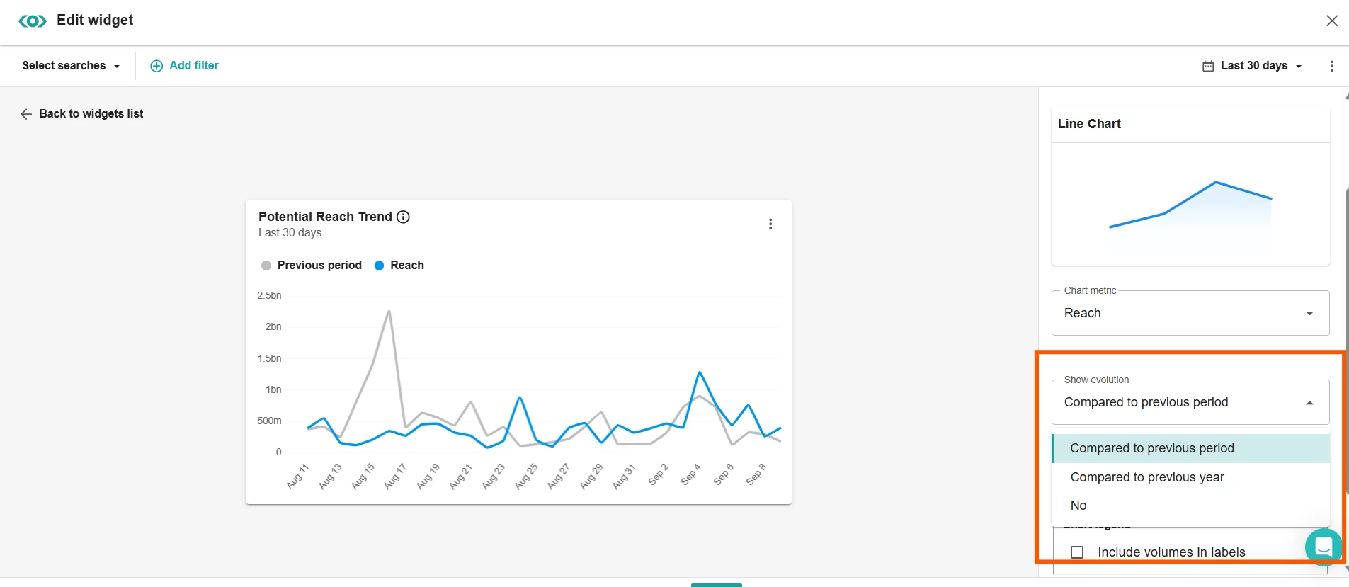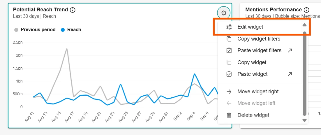 - In the right-hand slide-out, make any necessary adjustments to details like date range, card title, chart metrics, etc.