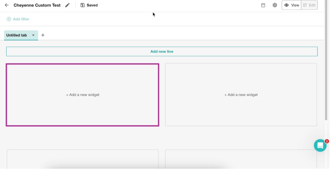 Note: You can add up to 45 widgets per tab (up to 15 rows per tab and up to 3 widgets per row).