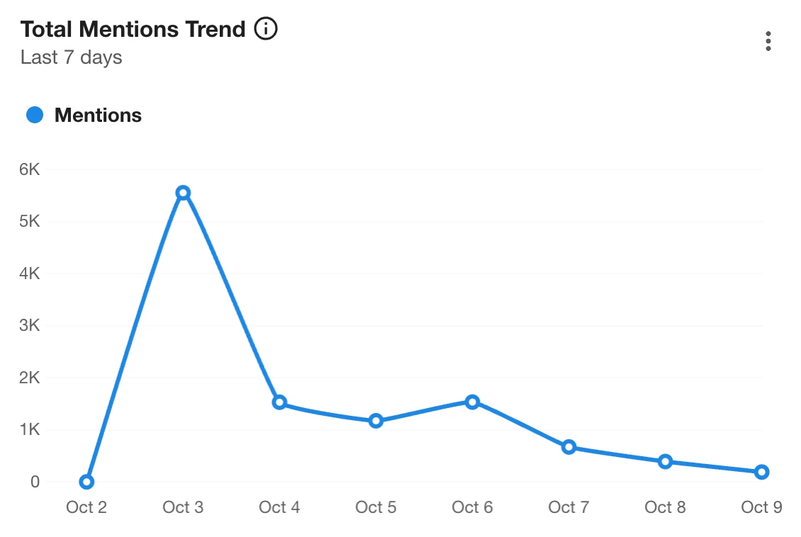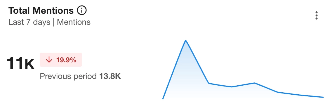 Total Mentions Trend - Total number of times your search terms appear across all sources in the selected date range. Shows changes over time using a continuous line.