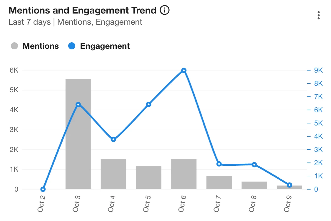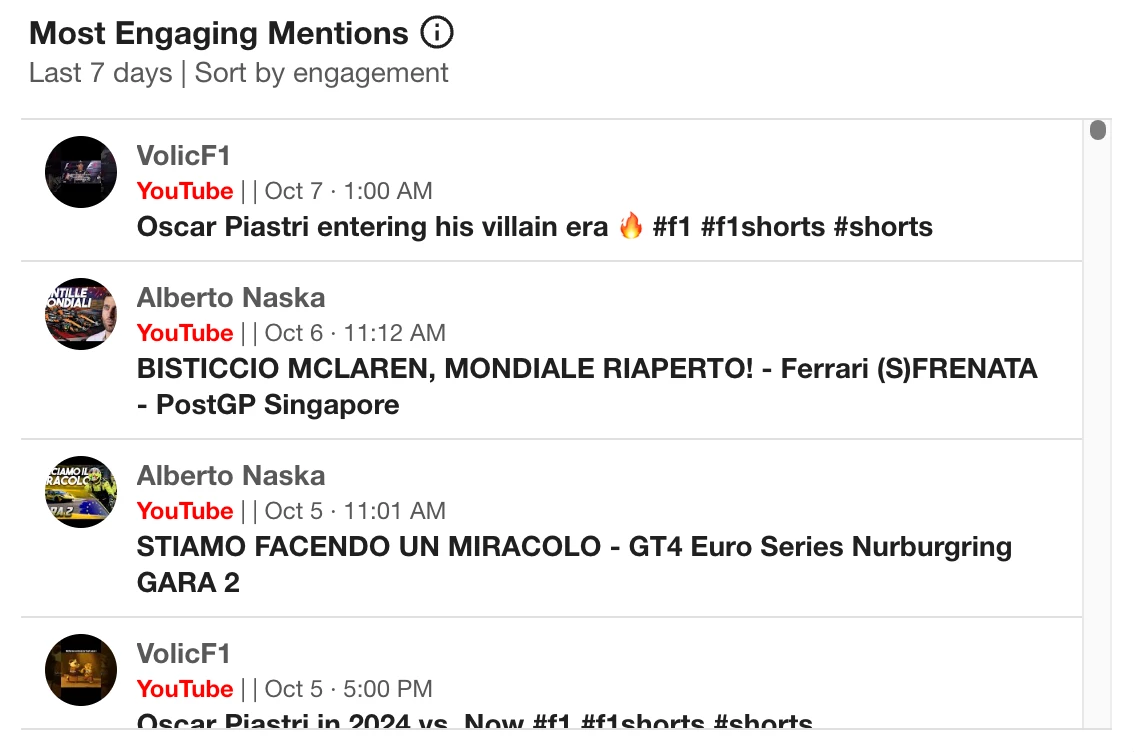 Most Engaging Mentions - Highlights the most impactful posts across channels based on your selected metric (e.g., engagement, views).