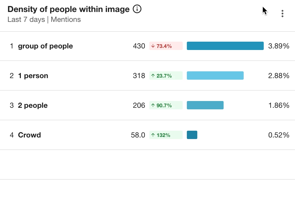 Density of People Within Image - Compares values across categories with horizontal bars. Number of people detected in visuals.