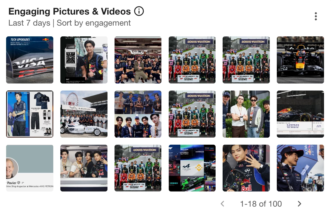 Engaging Pictures & Videos - Displays images from mentions or content in a tiled view.
