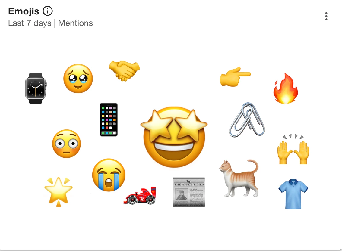 Emojis - Displays keywords by size based on frequency or importance. Commonly used emojis in posts