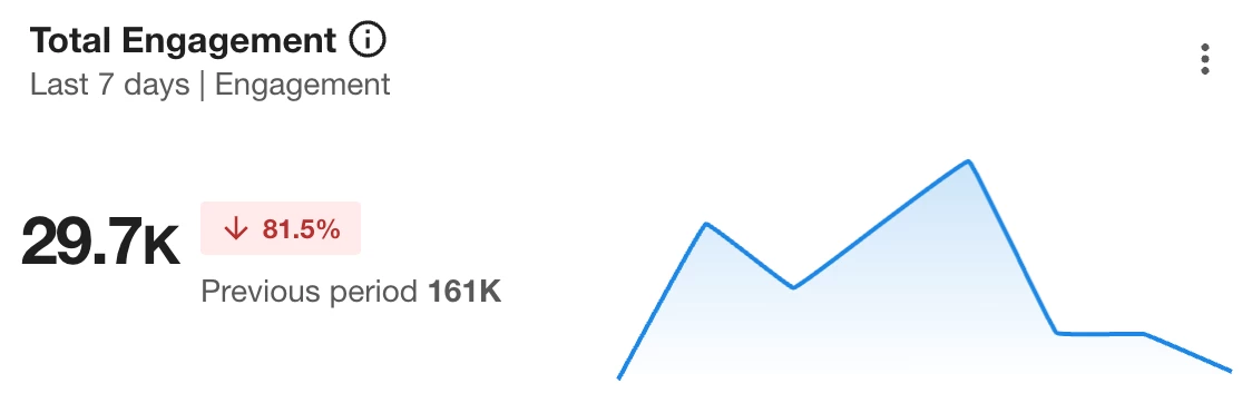 Total Engagement - Total number of interactions (likes, shares, comments, etc.) generated by mentions. Displays a single key performance indicator as a large number or percentage.