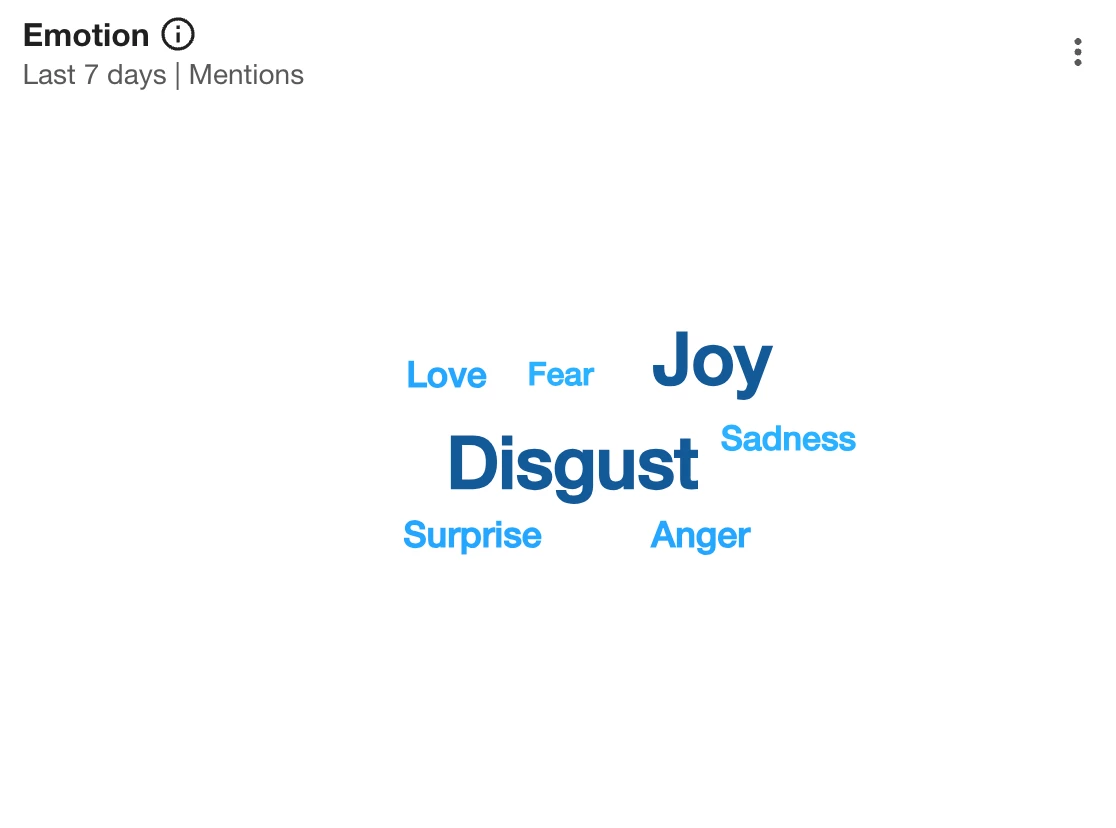 Emotion - Displays keywords by size based on frequency or importance. Detected emotional tone (joy, anger, sadness)