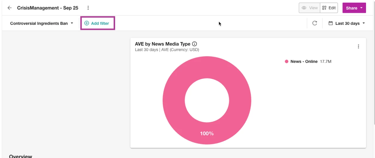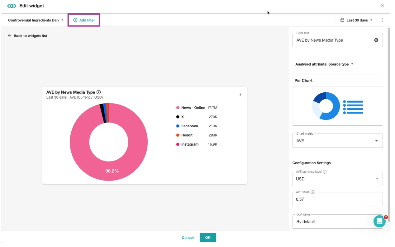 - The widget preview will pop up, click Add filter in the top left-hand corner