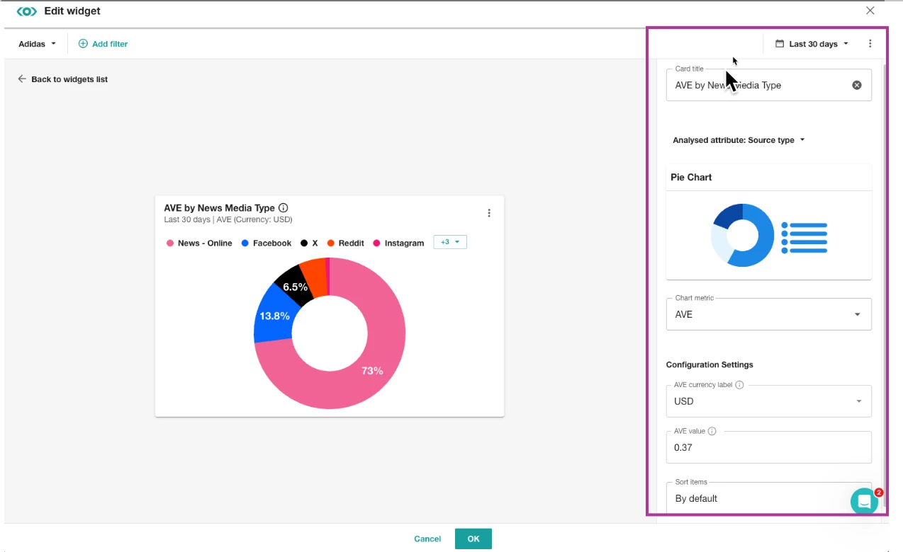 - Edit widget - The preview mode will populate to make your edits. Select OK once finished.