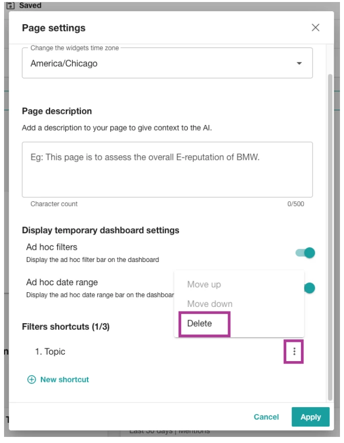- Paste widget filters - Paste the copied widget filters. Once filters have been selected, click Apply