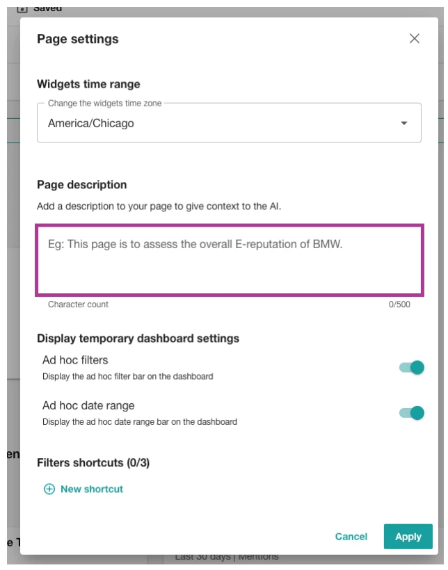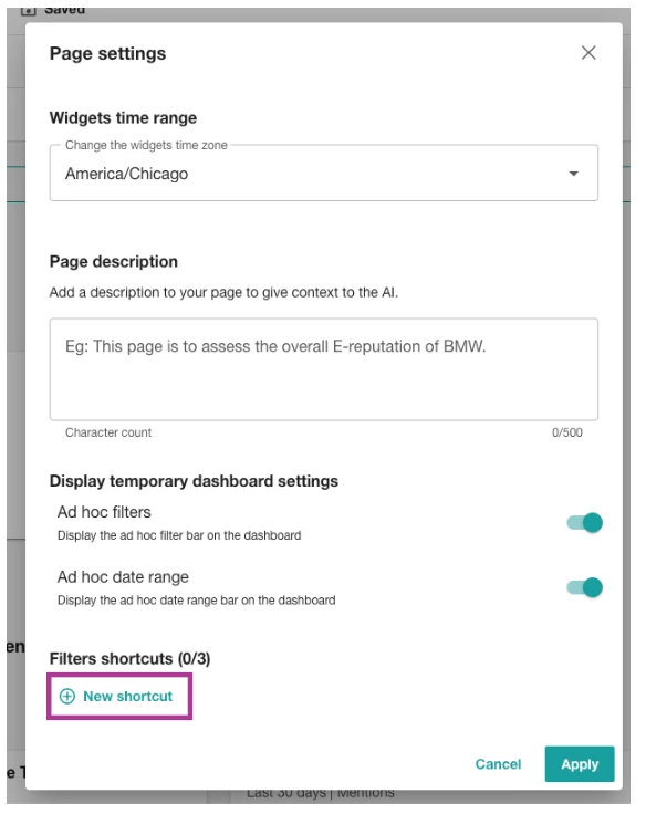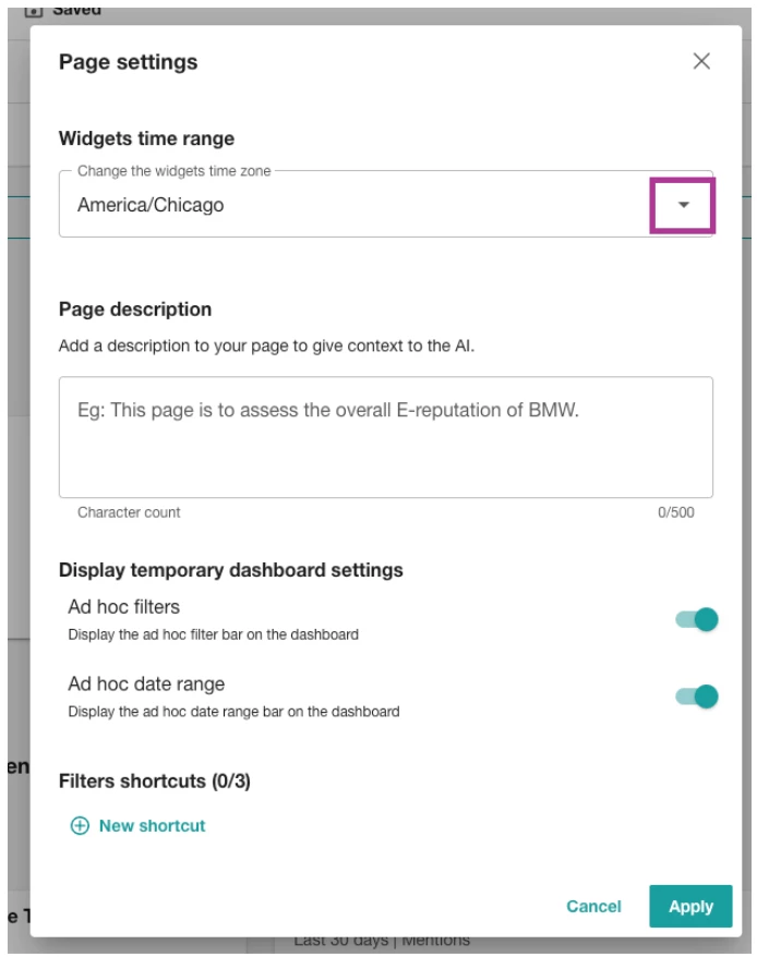 Page Settings help you bring structure and consistency to your dashboards, giving you more control over how your dashboard looks and works. They allow you to control how information is displayed, add helpful context for your audience, and create filter shortcuts that make navigation and analysis more efficient.