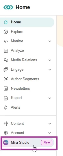 Click Mira Studio in the left-hand navigation bar.