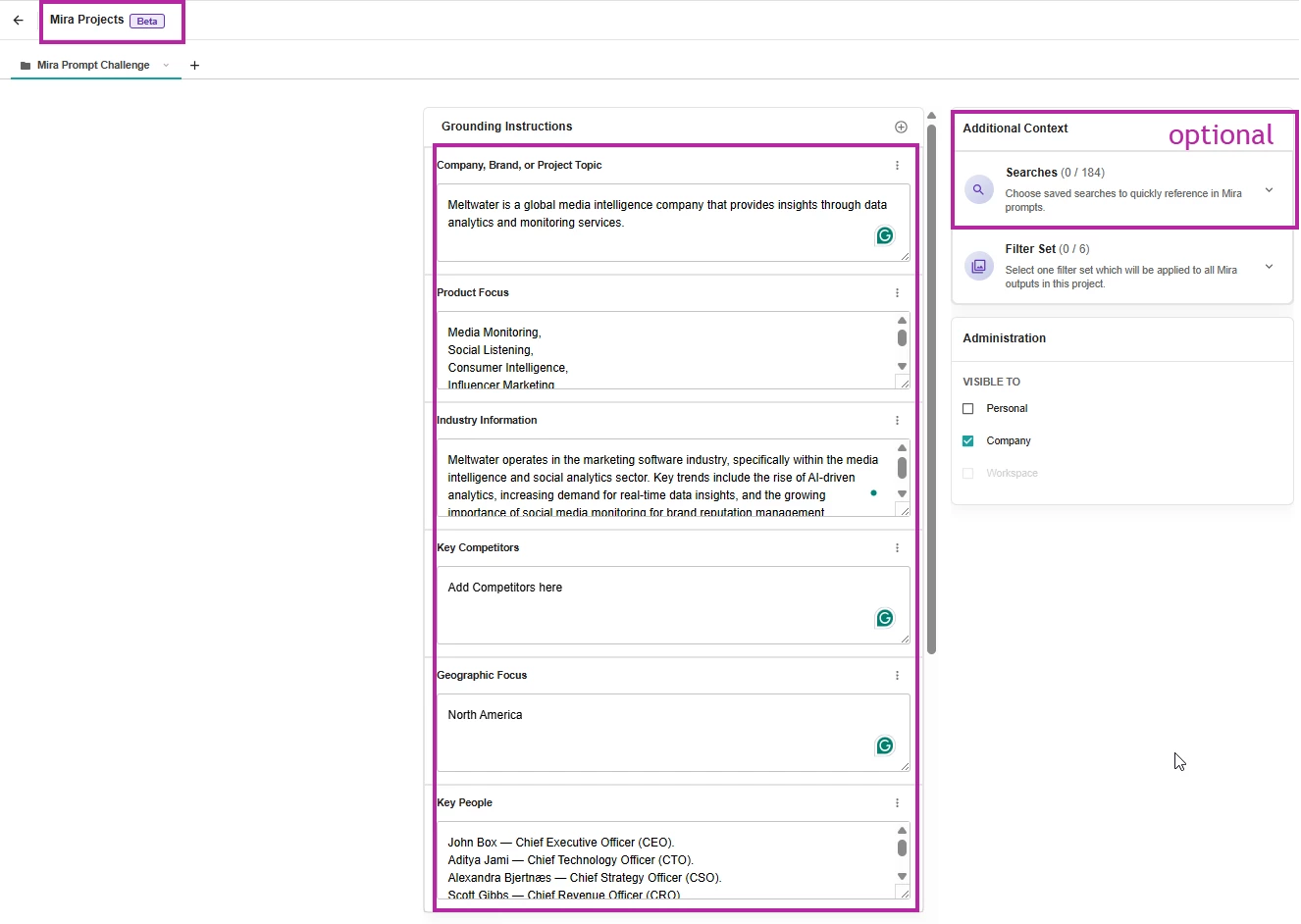 Start by creating a new project for your company or brand in Mira Studio or in the Meltwater Agent for Microsoft. This ensures the report pulls from the right context.
