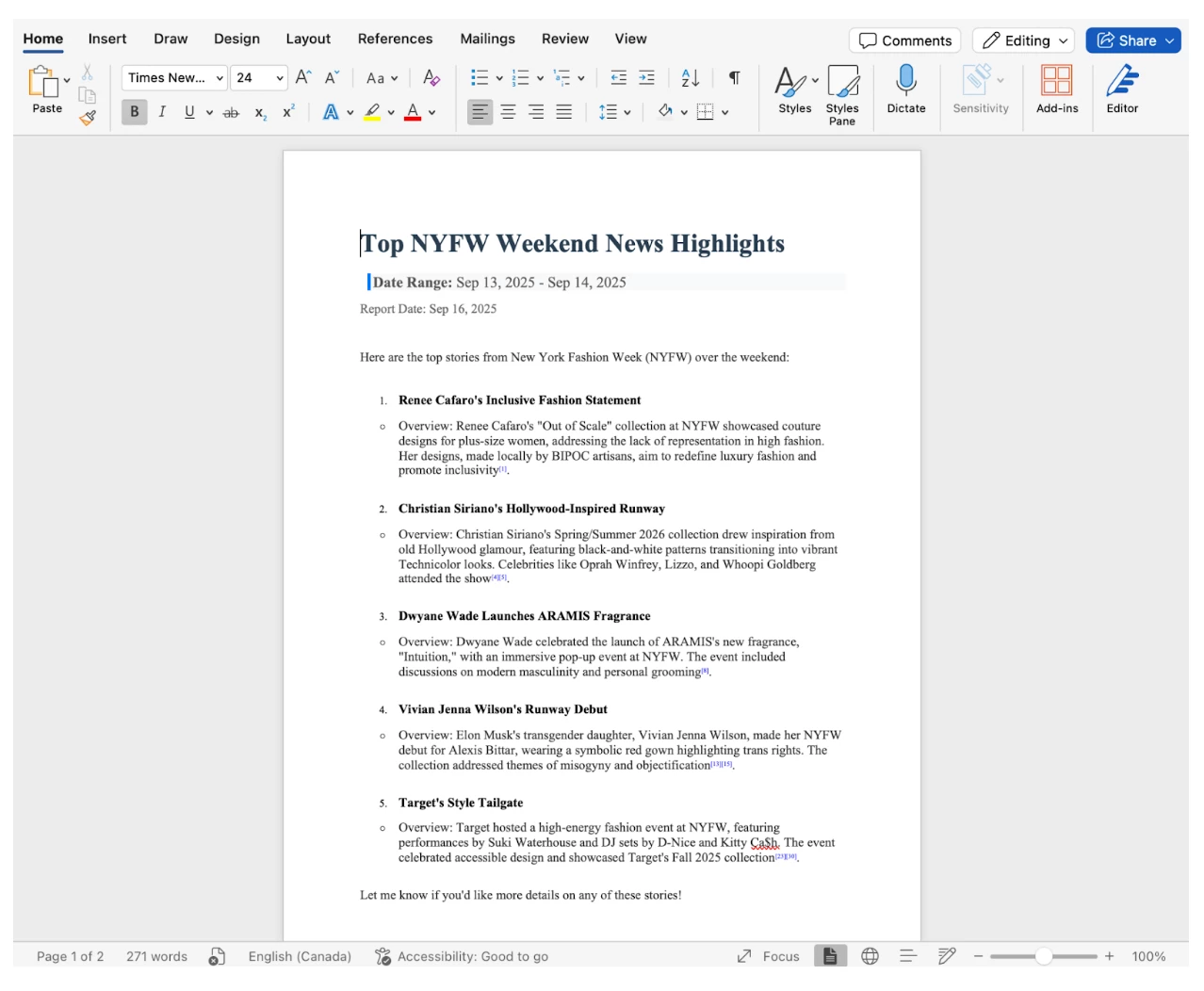 - Copilot will generate a Word doc of your conversation and follow-up message will confirm: