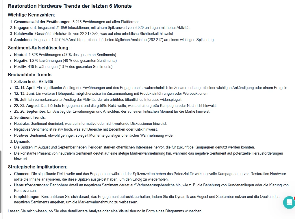 - “Vergleiche die täglichen Social Mentions von [Trend 1], [Trend 2] und [Trend 3] in den letzten 6 Monaten.” und erstelle ein Diagramm.