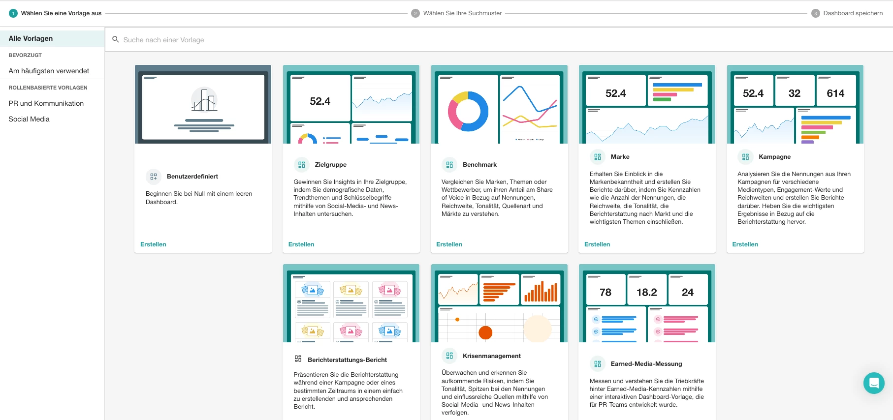 Für deinen ersten Report verwenden wir die Option Marken-Template.