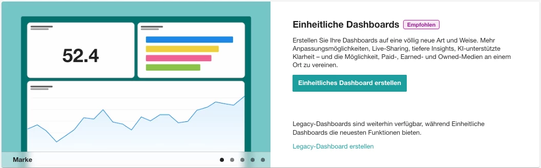 - Klicken Sie auf den Button Einheitliches Dashboard erstellen (bei manchen Nutzern wird möglicherweise Erste Schritte angezeigt)