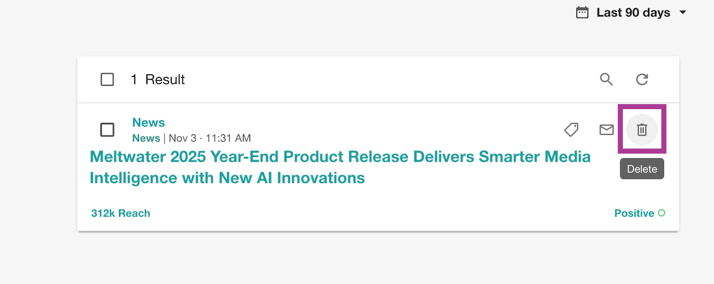 If a browser extension isn’t your preference, don’t worry—you can still add content directly from the Meltwater app. The in-app Add Content feature allows you to add any online document to our platform using its own URL. Once the content is included via Add Content, it will be available in your Search results, Tags, Dashboards, Newsletter, or Newsfeed.