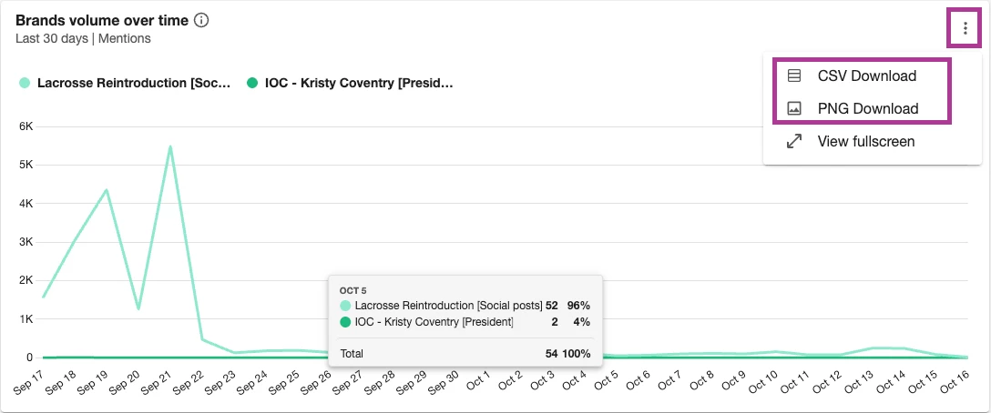 Yes. Click the kebab menu in the top right-hand corner of the widget and select between CSV or PNG.