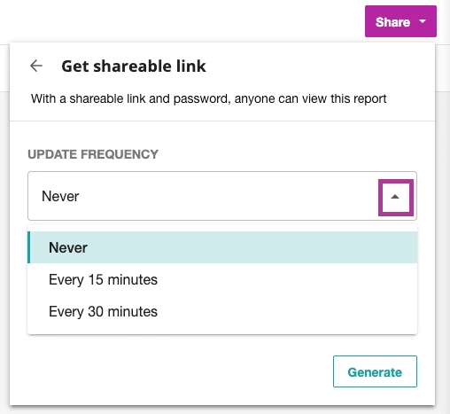Yes. When selecting the shareable link option you can select an Update Frequency. Select between every 15 minutes or every 30 minutes.