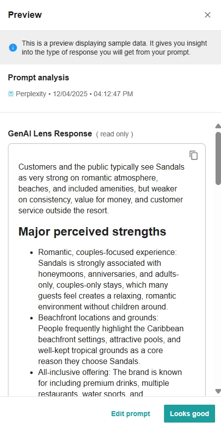 像 ChatGPT、Claude 和 Gemini 这样的生成式 AI 平台正在迅速成为人们了解公司信息的首选之地——通常在有人访问你的网站之前就已经形成了品牌认知。GenAI Lens使你能够直接了解这些 AI 工具如何描述你的品牌,包括它们使用的语调、引用的来源和突出的叙述。在本指南中,你将学习如何在 GenAI Lens 中创建一个提示,以揭示你的品牌以及你的竞争对手在 AI 生成内容中的表现。