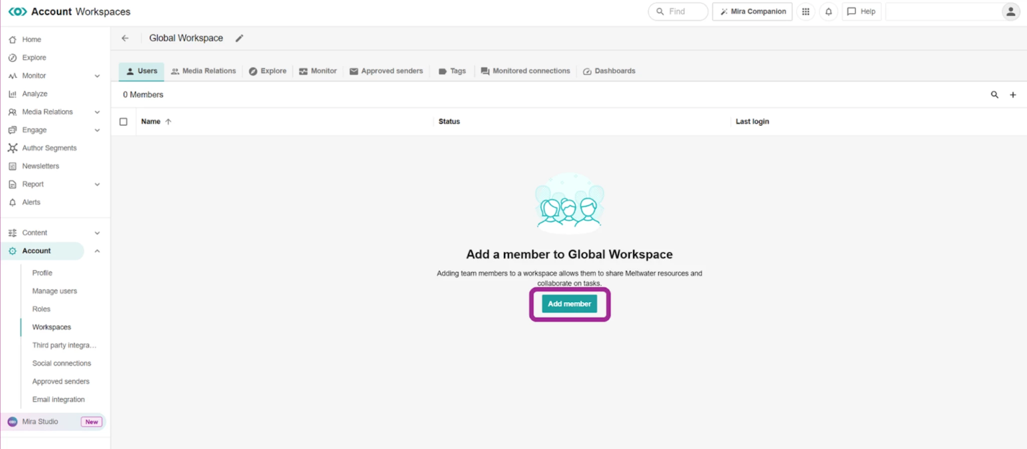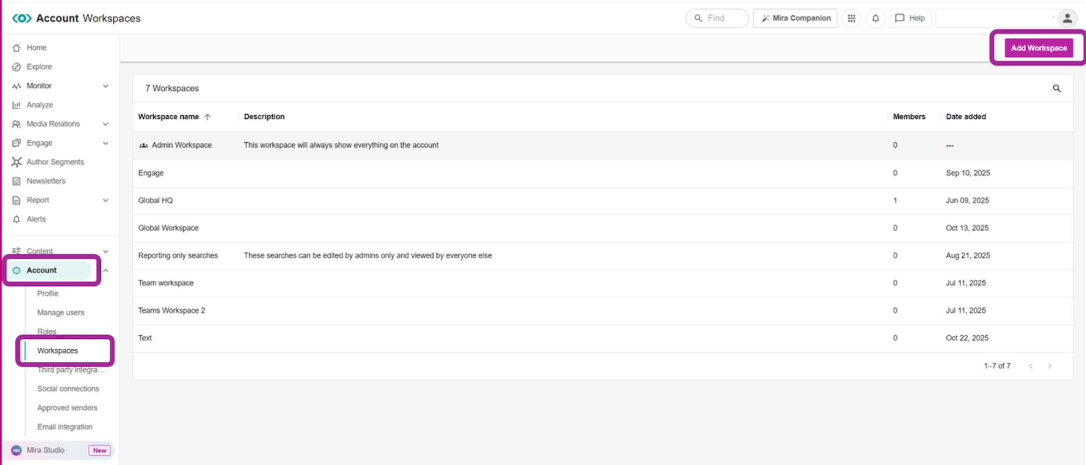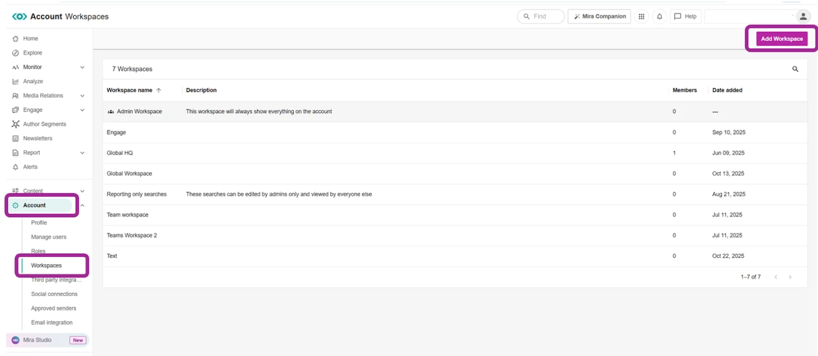 Note: If you do not have access to Workspaces, contact your Meltwater Representative.