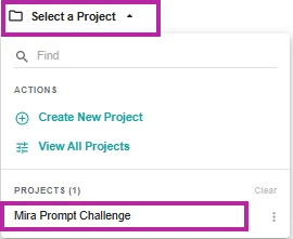 - Pour retourner à Mira Studio pour utiliser votre nouveau projet, cliquez sur la flèche à côté de Mira Projects