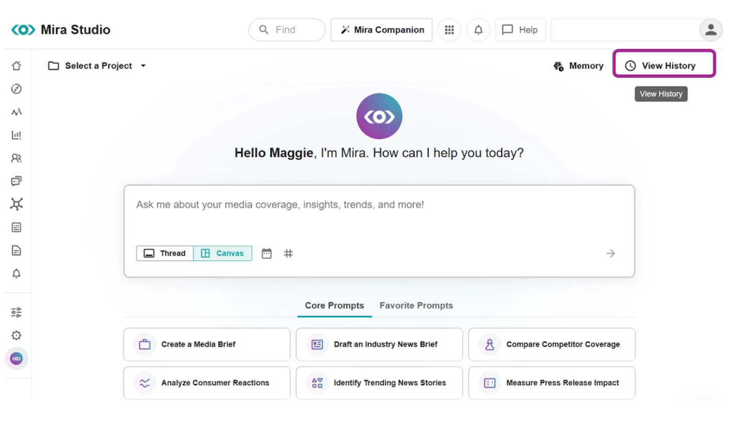 - Cliquez sur Mira Studio dans la barre de navigation à gauche