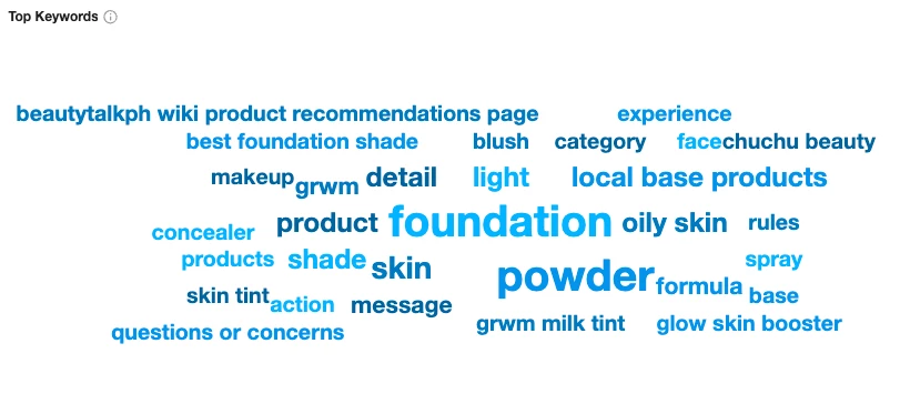 Often times the default method for creating a new search starts with keywords and phrases. For example, if we wanted to begin to uncover trends and feedback in the makeup industry, I may start by building out a search that looks something like this: