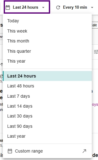Change the date range to Today or Last 24 hours