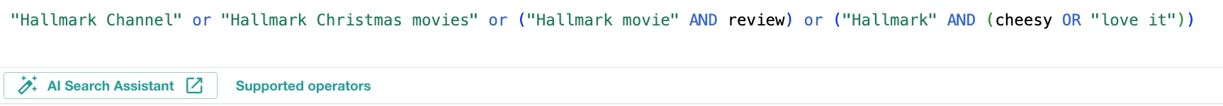 🔍 Head to Explore and start a search for your brand. If you're Hallmark, you could ask the AI Search Assistant to help you build one that captures holiday mentions, like:
