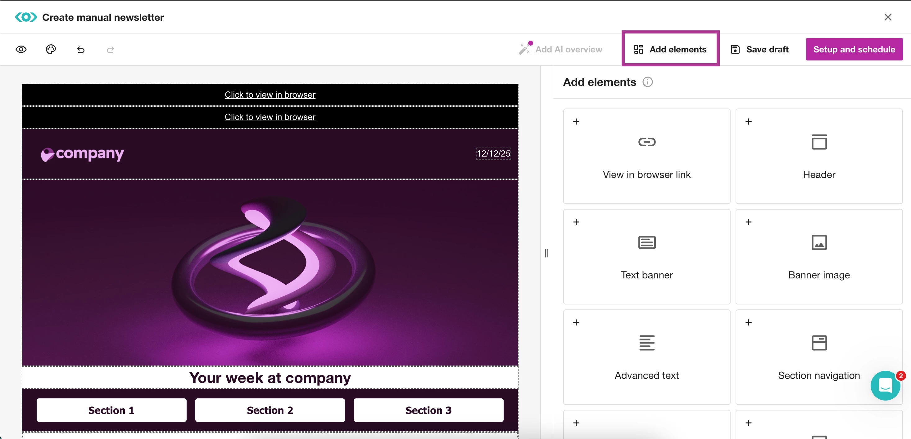 Now that you have created your newsletter template, it is time to add the content that will appear in your Manual Newsletter distribution.