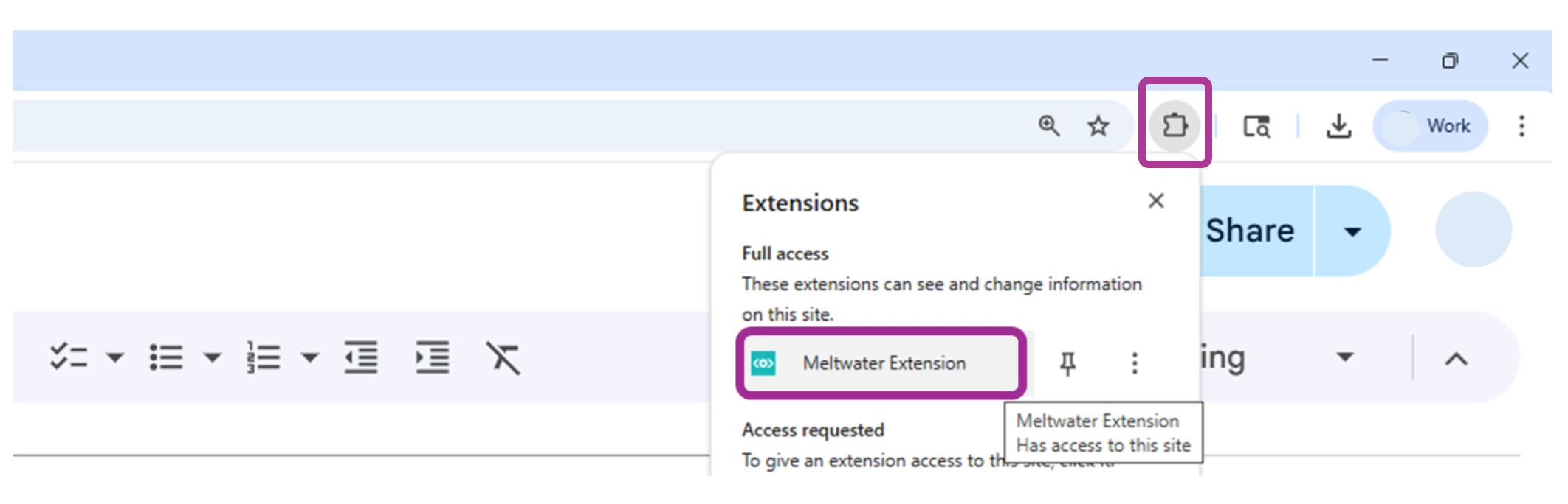 Before using the Chrome Extension to add an article to a Newsletter, ensure you have the Meltwater Chrome Extension downloaded. Learn more about Installing the Meltwater Chrome Extension