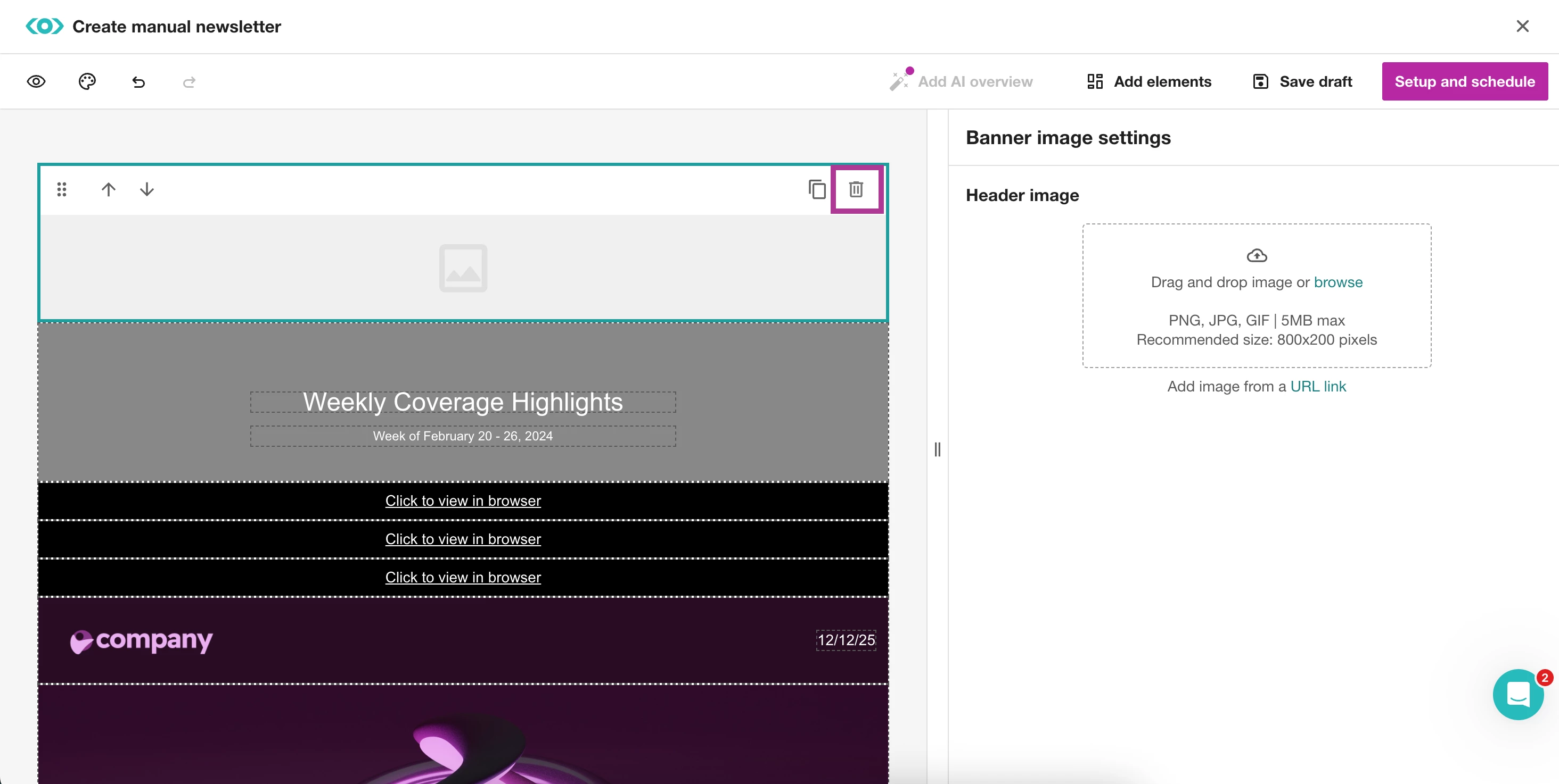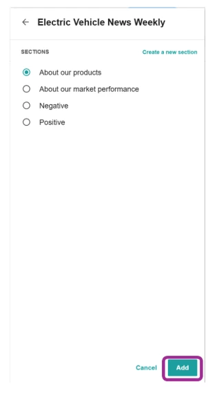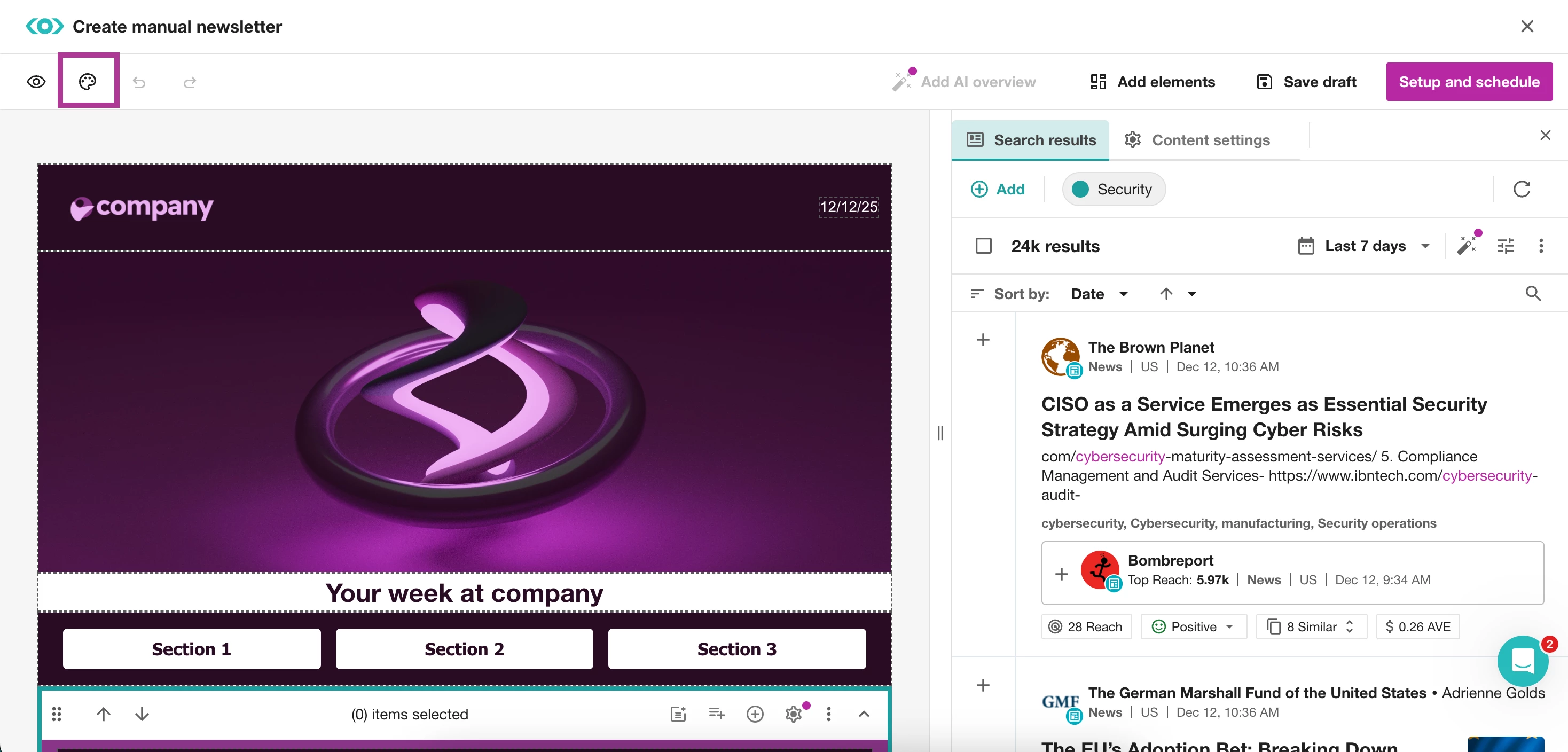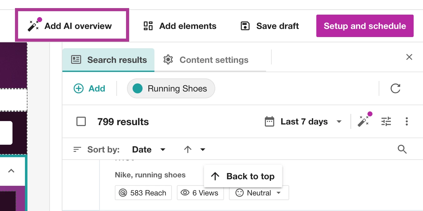 1. Click on Add AI Overview to automatically generate key themes from the news content you’ve added