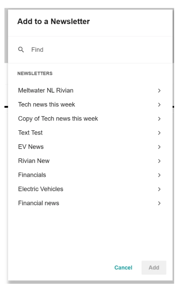 2. Click Add to Newsletter for a list of existing manual Newsletters.