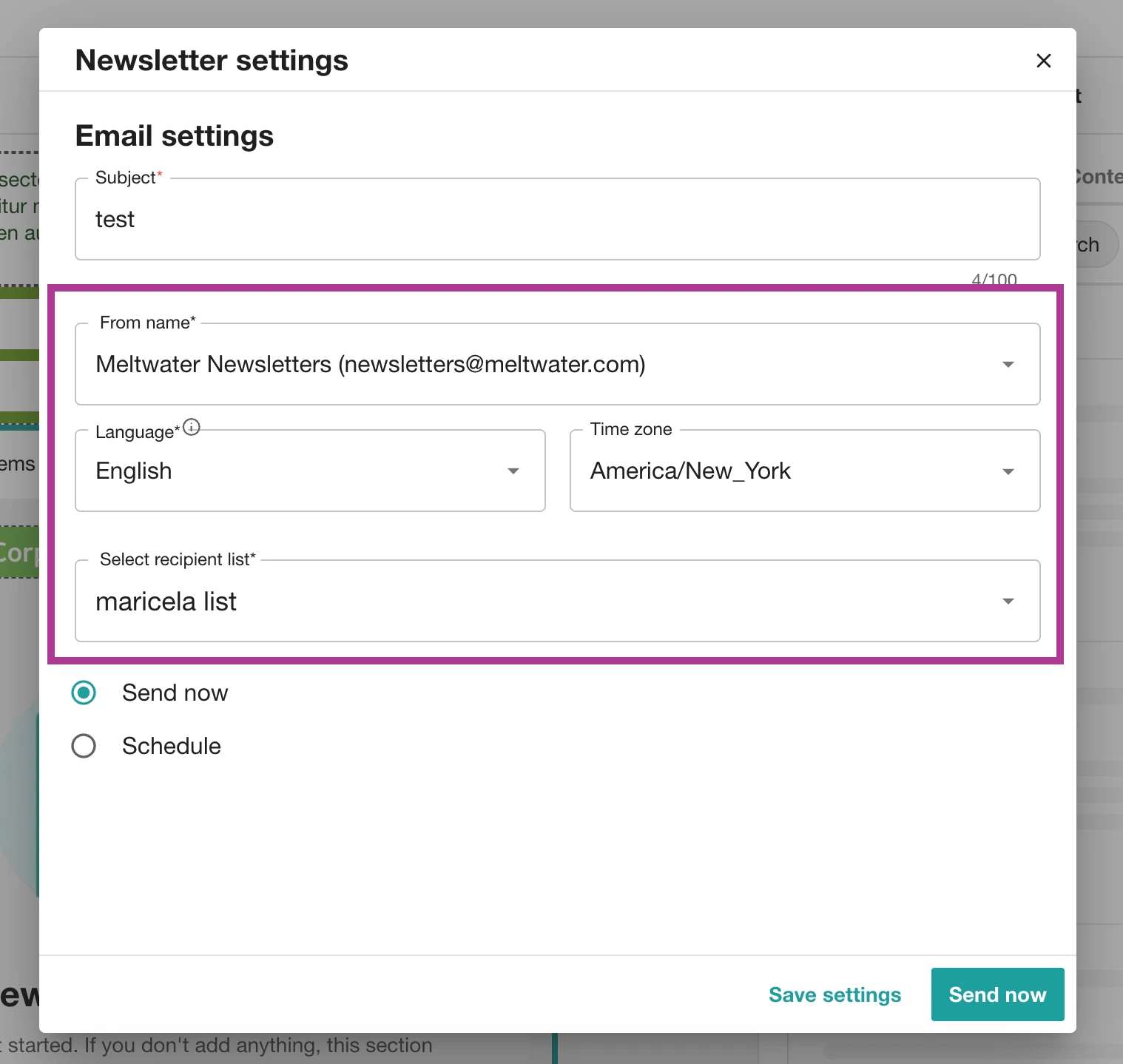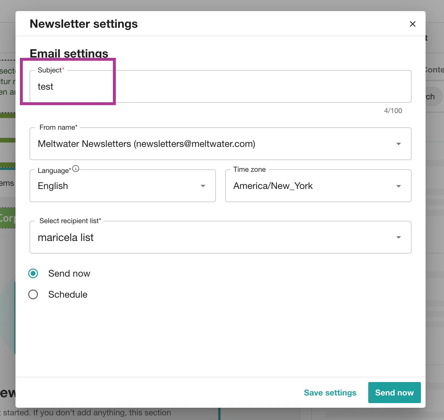 18. 选择立即发送以立即发送您的新闻简报,或选择安排在以后日期或时间发送
