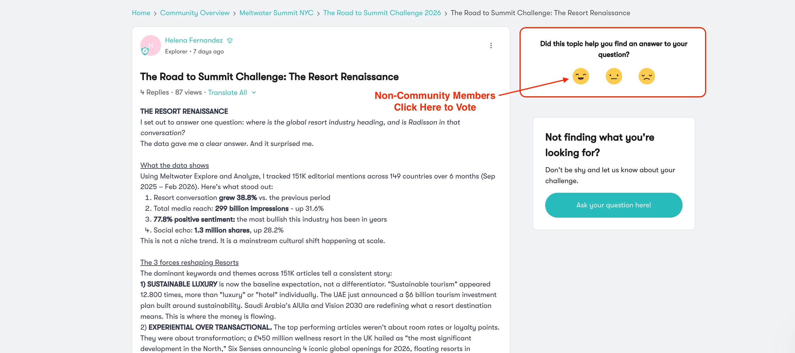 If members of your extended network are not part of mCommunity but still want to engage with your report, they can simply vote using the smiley face icon in the top right-hand corner of the article you share.